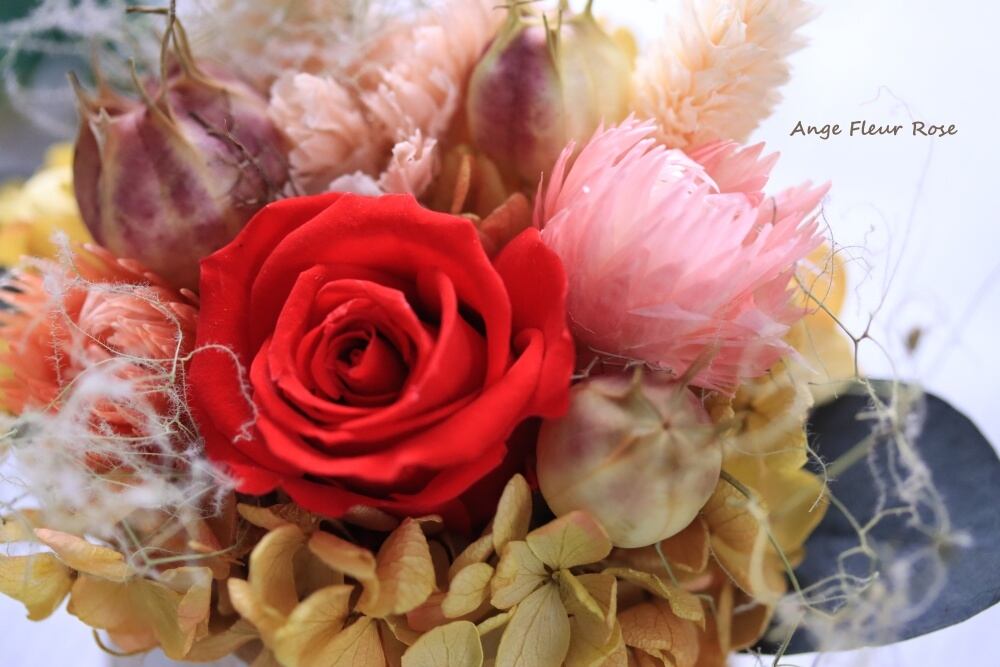 プリザーブドフラワー:ローズ、カーネーション、紫陽花、ポプルス